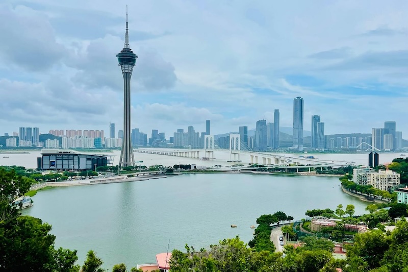 マカオタワーと橋を一望できる絶景ポイント。コンパクトな都市ながら、想像以上にスケールの大きな景色が広がります。