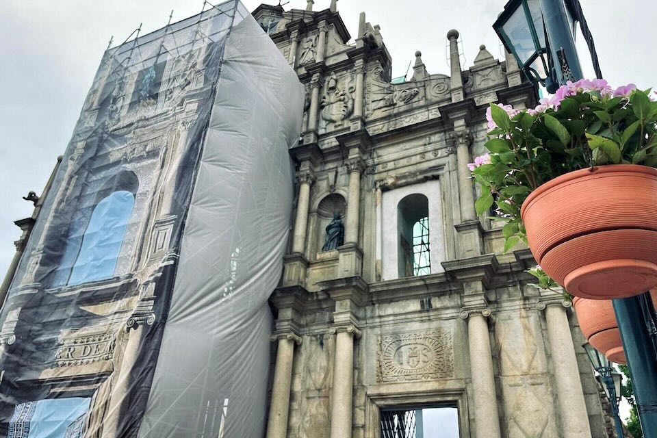 聖ポール天主堂跡。マカオを象徴するランドマークで、工事中でもその迫力は圧倒的。訪れる価値のあるスポットです。