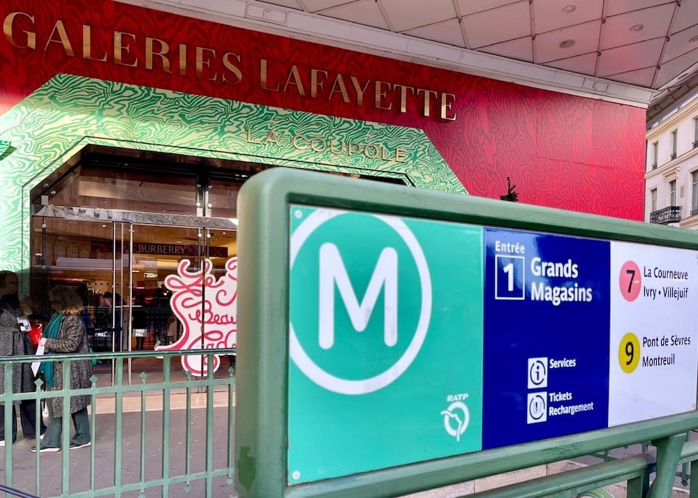 ギャラリー・ラファイエットは、 メトロ「Opéra」駅や「Chaussée d’Antin – La Fayette」駅から徒歩圏内。 観光の合間やショッピング途中にも、 無理なく立ち寄ることができるアクセスの良さが魅力です。